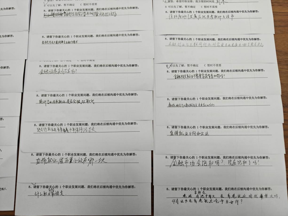 (部分学生在活动反馈表上留下的职业规划相关问题)