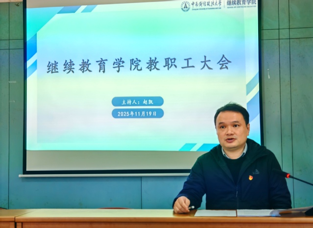 继教院网讯(通讯员舒曼),为强化教职工纪律意识,凝聚发展合力,11月19日上午,继续教育学院召开全体教职工大会,会议由院长赵凯主持。