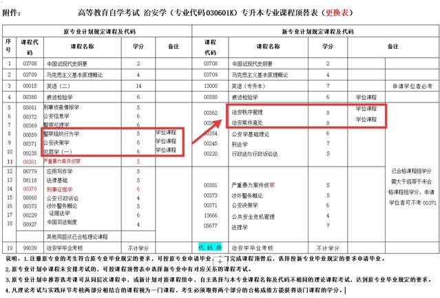 仅允许用旧计划学位课程顶替新计划学位课程。