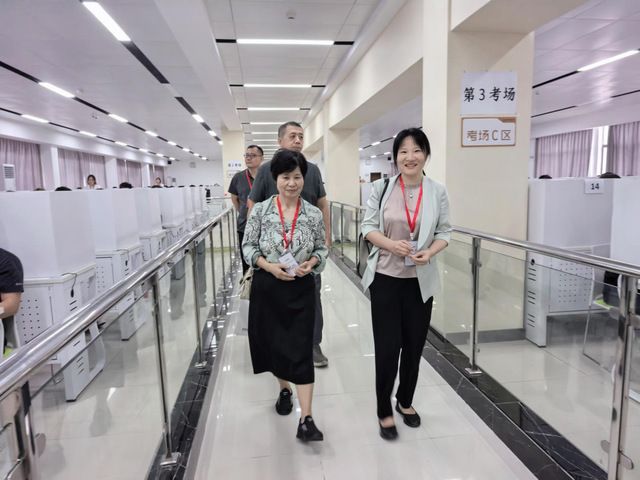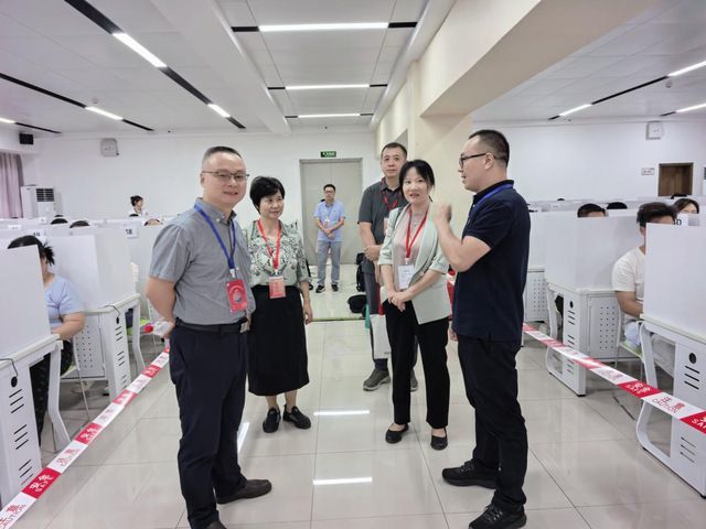 巡考组一行首先深入我校数字化考试基地,实地察看了机考考场的硬件设施、网络环境、安防系统及考务组织情况,仔细询问了考生登录、试题分发、答题提交等考试流程,现场观摩了考生机考操作,并与工作人员就考试系统稳定性、应急处置预案等进行了交流。